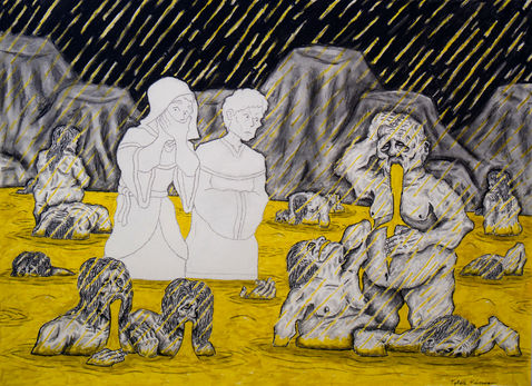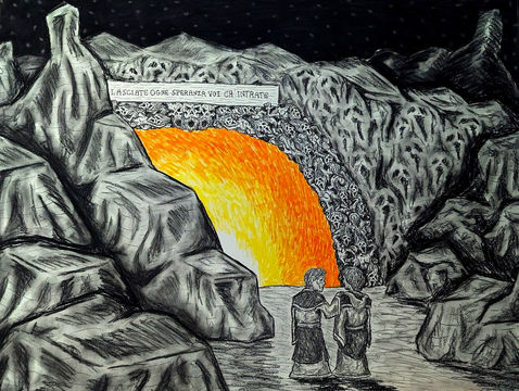 32 illustrations of the epic poem, Dante's Inferno, in its entirety. Illustrated from August 2023 - December 2023, Dante’s Inferno began with the goal of creating an easily approachable and accessible exploration into the epic poem. Dante’s original text is dense, dancing from prose to prose with beauty and charm despite its somewhat horrific subject matter. I sought to celebrate this, through an illustrative nature with a unique charm for each circle. Figures anatomies are changed and warped allowing each circle a breath of individuality. Dante & Virgil too are distinctive, presented as white ethereal figures seemingly displaced like wraiths passing through hell. Though the journey centers on Dante, we too are encouraged to walk alongside him, exploring the nature of sin.